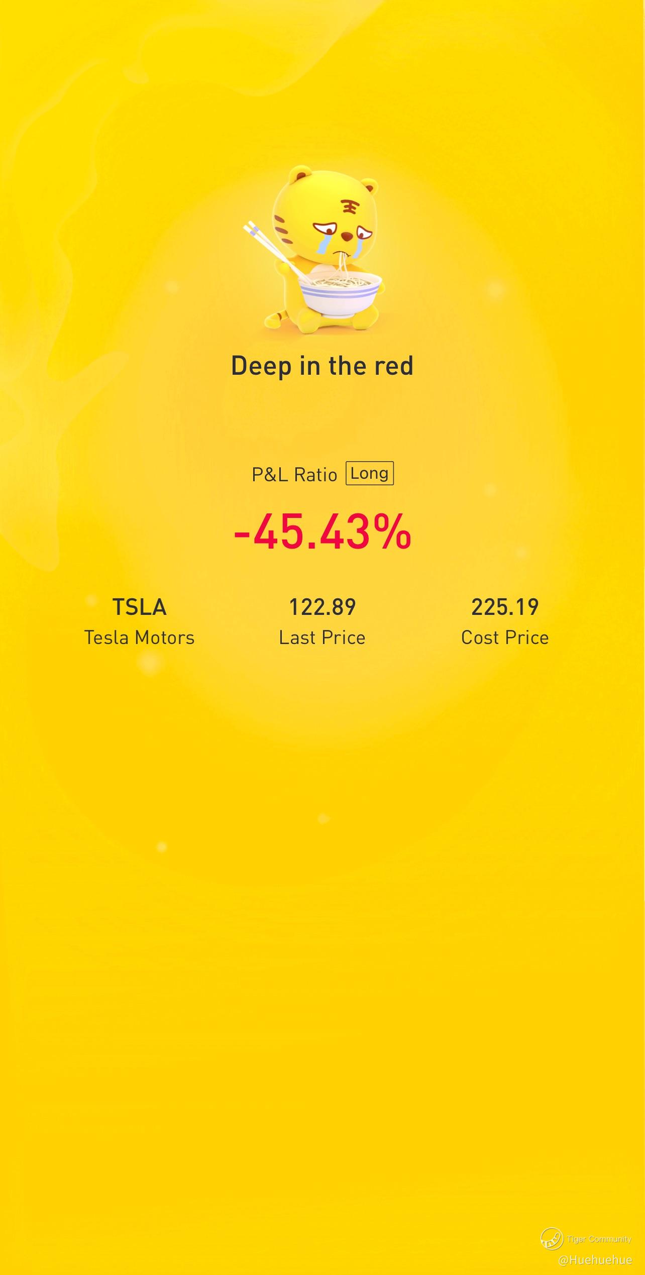 $Tesla Motors(TSLA)$ From 100% profit now to 45% loss, and I'm still convicted đđť
