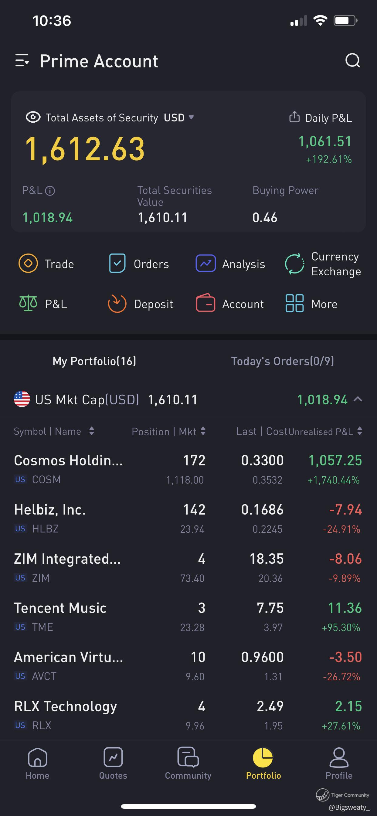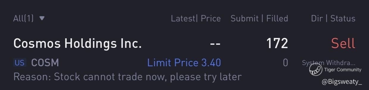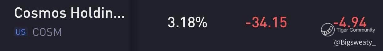 It's been a fun 3 hours being taunted in premarkettrading with $Cosmos Holdings Inc.(COSM)$ showing a 1700% gain but not being able to executeany trades on it (which I eventually in realised I wouldn't be able to trade until they execute the reverse stock split on my shares) knowing this I watched as my (supposed) 1700% gain turned into a 66% loss. I knew it was too good to be true but apart of me wanted to believe I would pull off thebest trade of my life.