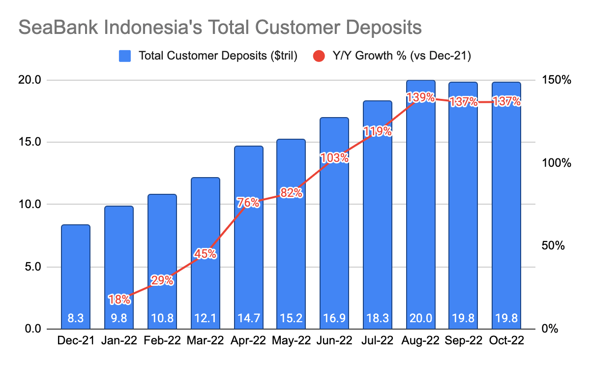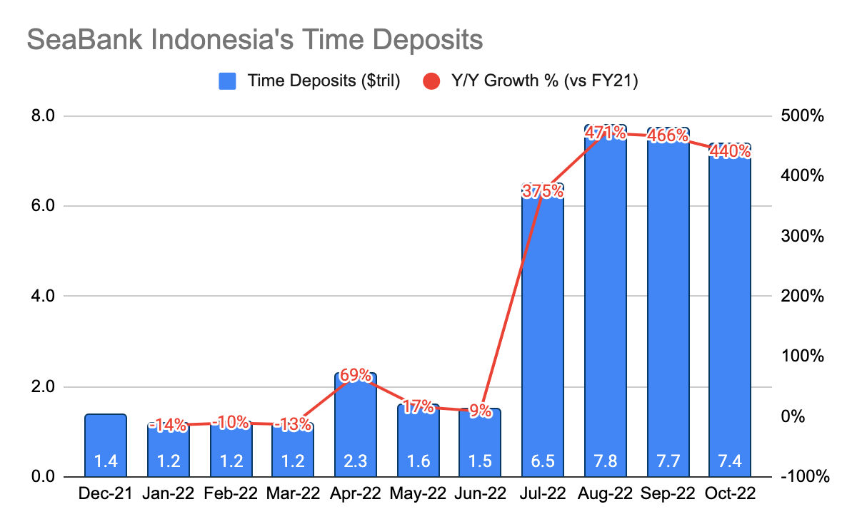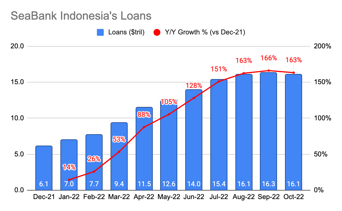 On the other hand, its total loans have been accelerating from 14% Y/Y on Jan 22 to over 163% Y/Y on Oct 22. We've seen how quickly its loans have been growing, and I believe securing third-party financing will be able to scale its loans and deposits over time. Most recently, SeaMoney struck a partnership withCIMB Bank PHto onboard 2.5 million BNPL users in 2023, which is double that of the current SeaMoney user base of 1.3 million.
