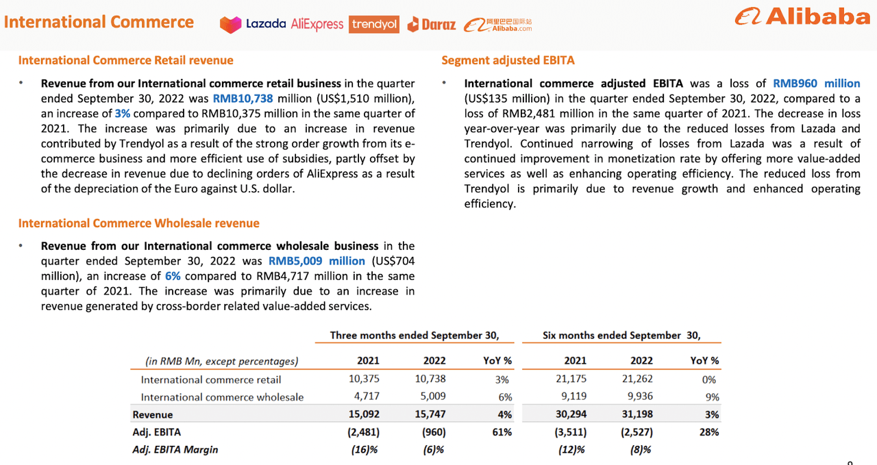 As of 3Q22, Sea Limited's net margin is -18% as compared to GoTo's net margin of -262%. We see that GoTo is still struggling to attain profitability given its huge operating losses, while Sea Limited is in an enviable position to hit profitability. Whereas, Alibaba's international commerce's adjusted EBITDA margin is 6% for 2Q22 as compared to Shopee's net margin of -30% in 3Q22. While Lazada does not break down its adjusted EBITDA, I believe its losses are much higher given that the 6% margin is a consolidated figure and Shopee's losses are also driven by Shopee Brazil.