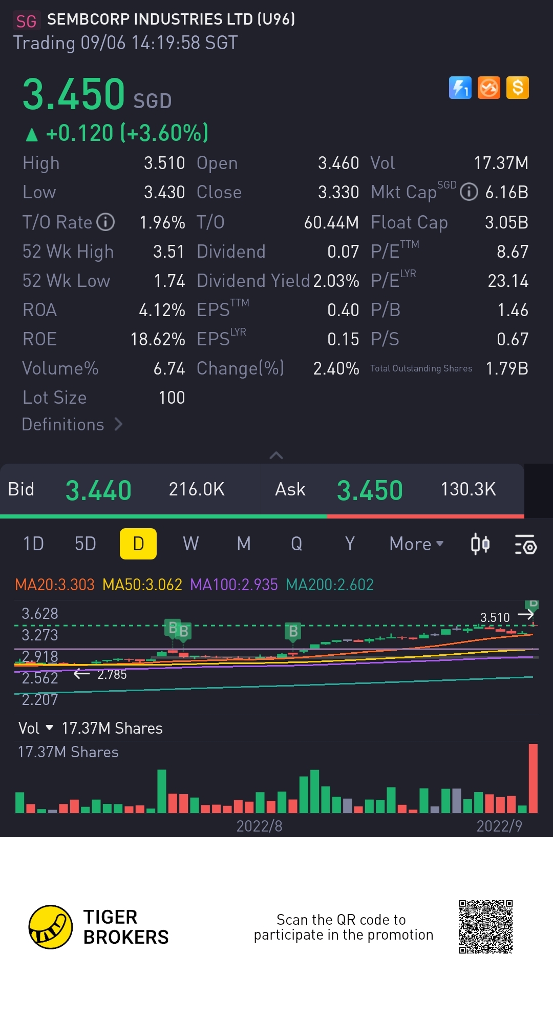 $SEMBCORP INDUSTRIES LTD(U96.SI)$is this stock poised for greater heights? Good volume today