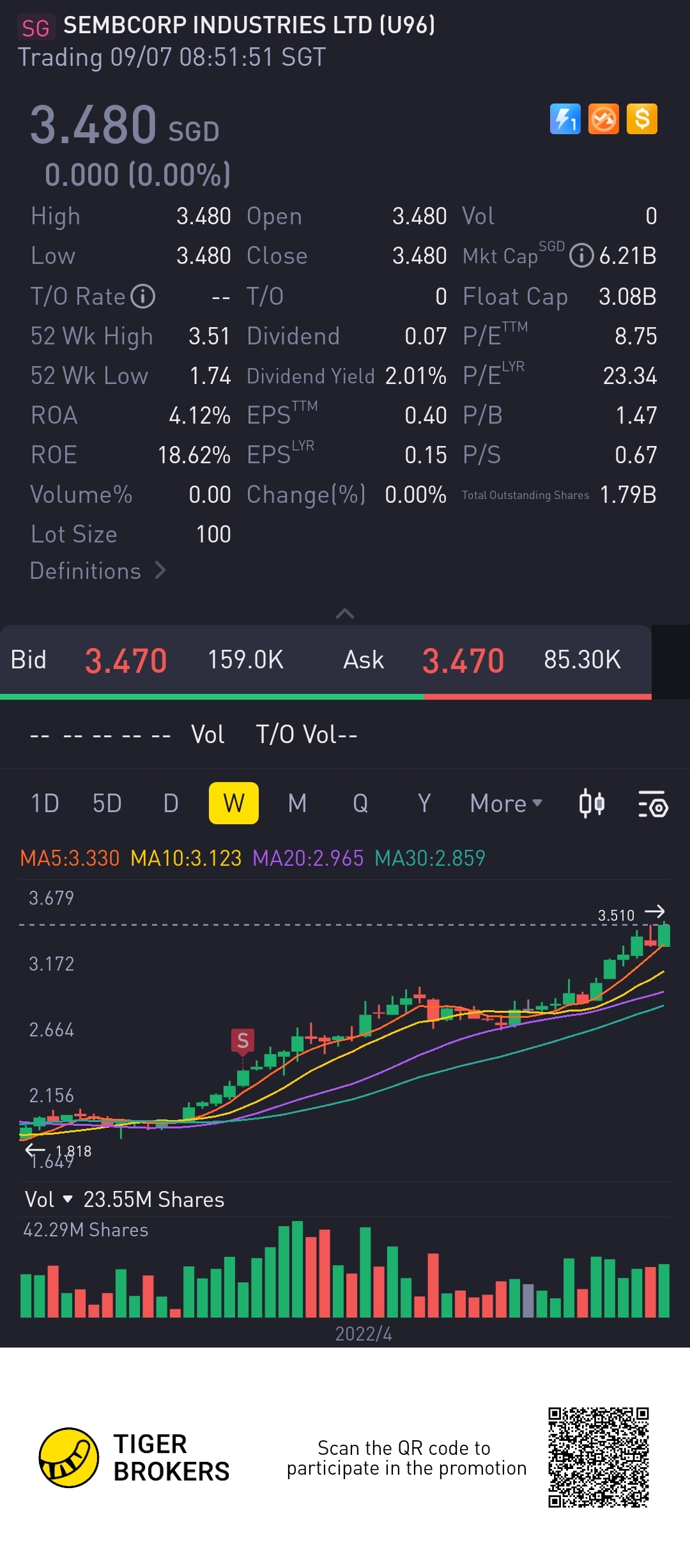 $SEMBCORP INDUSTRIES LTD(U96.SI)$fantastic performance, next challenge should be 4.