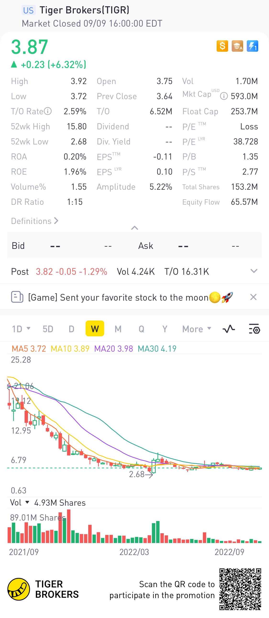 $Tiger Brokers(TIGR)$Is lower than value p