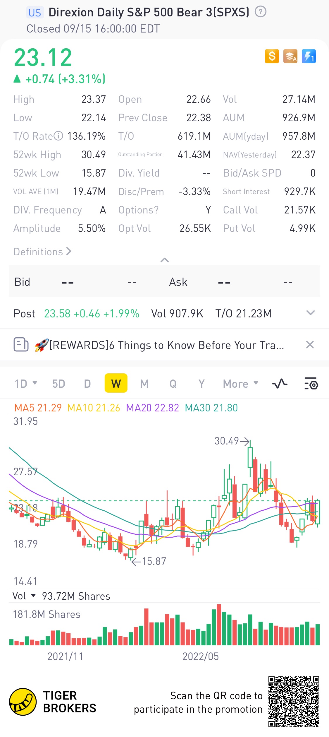 $Direxion Daily S&P 500 Bear 3X Shares(SPXS)$Is up