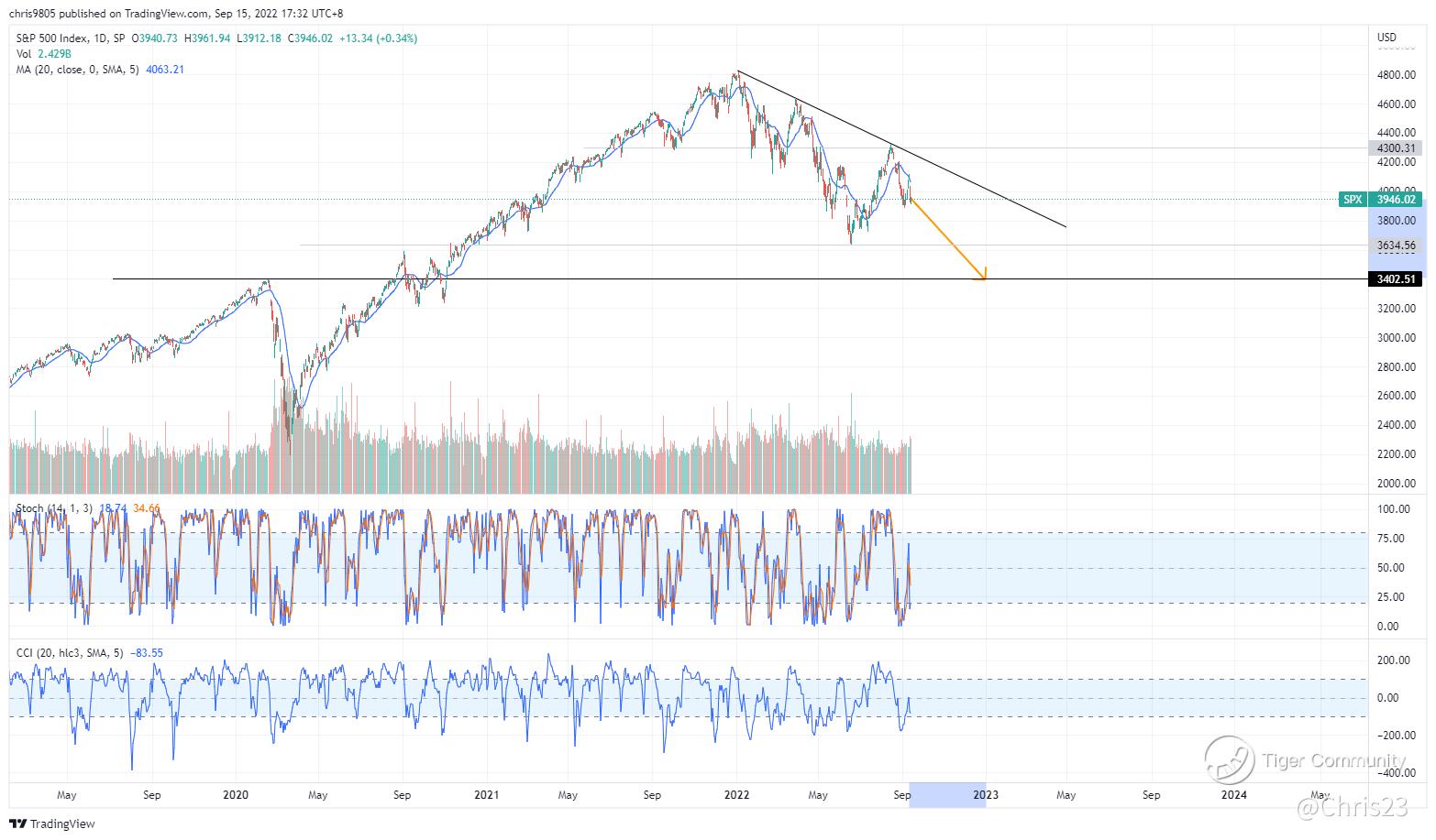 According to the daily charts, the next level of support is at the June lows of 3,634. Should this level fail to hold, there is a high possibility that we retest the Feb 2020 highs of 3,400, which previously acted as resistance. This move to 3,400 implies a downside move of ~15%.