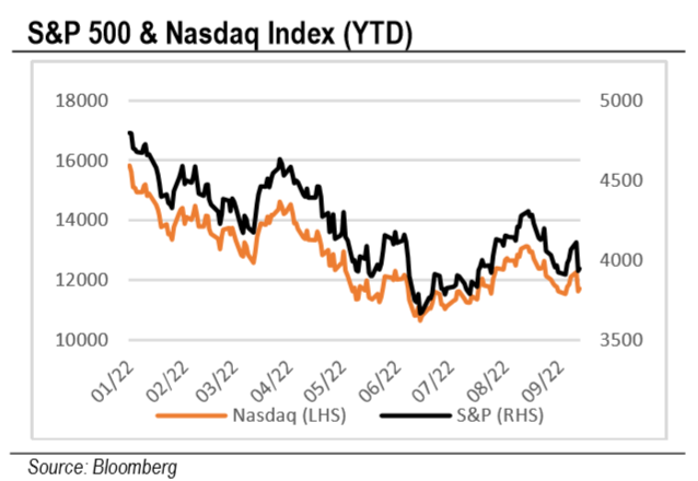 The ECB also decided on a jumbo rate hike of 75bps from zero last week, after the 50bps hikes in July. Europe is in a catch-22 situation given that inflation in August is expected to hit 9.1% and may continue to creep higher in the months into winter as energy prices continue to remain high, given the restricting of gas from Russia. Moreover, we expect crude oil prices to stay firm, sanctions on Russian oil are expected to start in December.