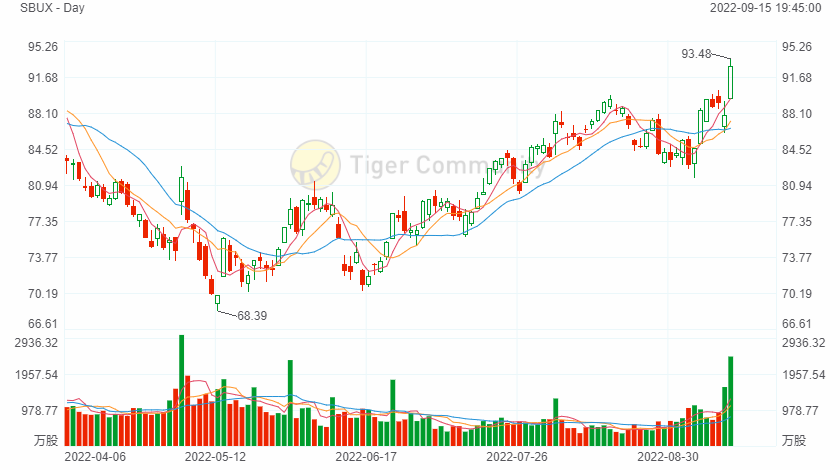 $Starbucks(SBUX)$ raised its 3-year outlook on an expected recovery from its China operation, seeing 15%-20% rise in earnings per share over the next 3 years backed by solid same store growth as well as implied margin improvements, which is above the comparable restaurant sector’s average.