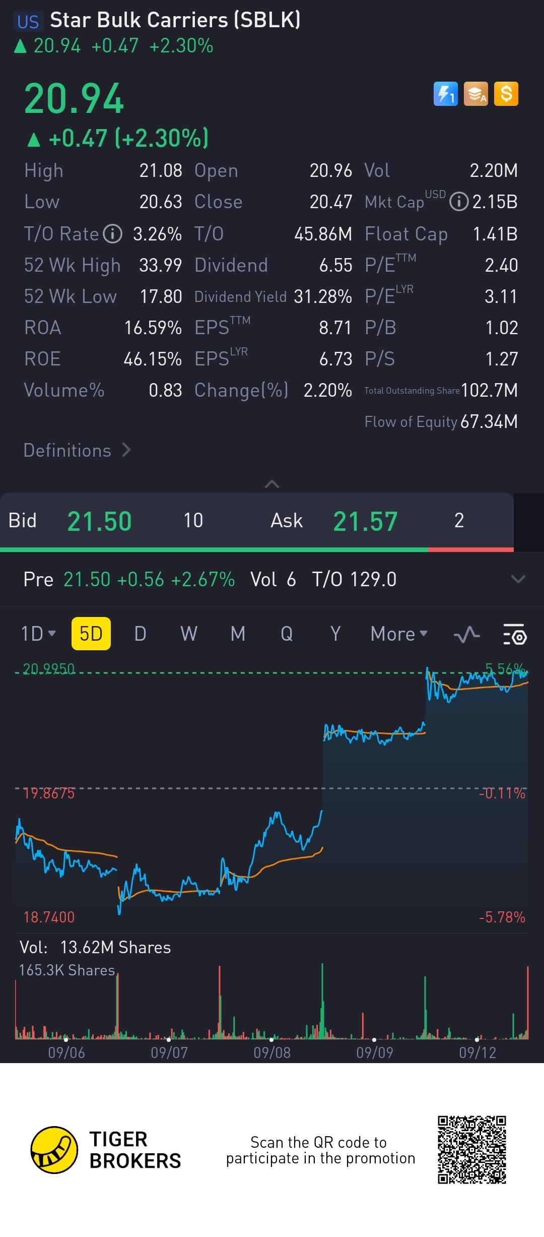 $Star Bulk Carriers(SBLK)$i noticed an increasing trend in sblk, if anyone interested in trading ,it will be a good candidate