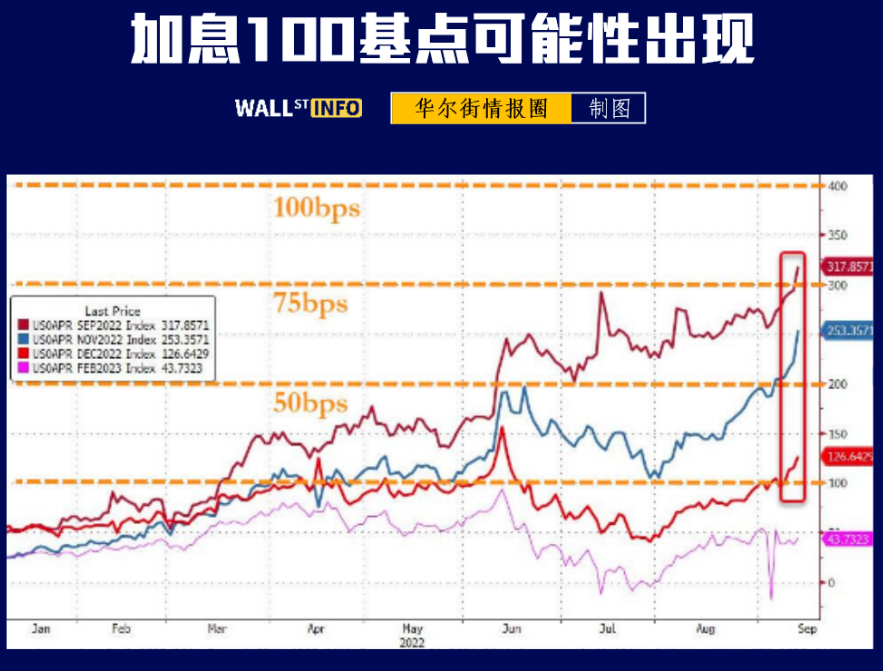 First, there is a lock in at least 75 basis points of interest rate increase in September (the possibility of raising interest rate by 50 basis points has completely disappeared), and there is an expectation of raising interest rate by 100 basis points. Although this is only the idea of a few people, this possibility is real.