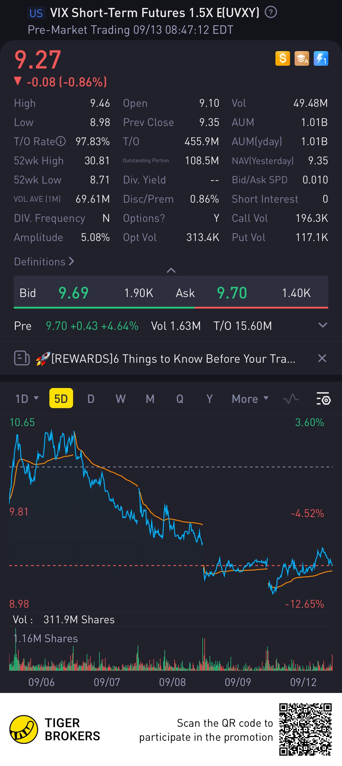 $VIX Short-Term Futures 1.5X ETF(UVXY)$