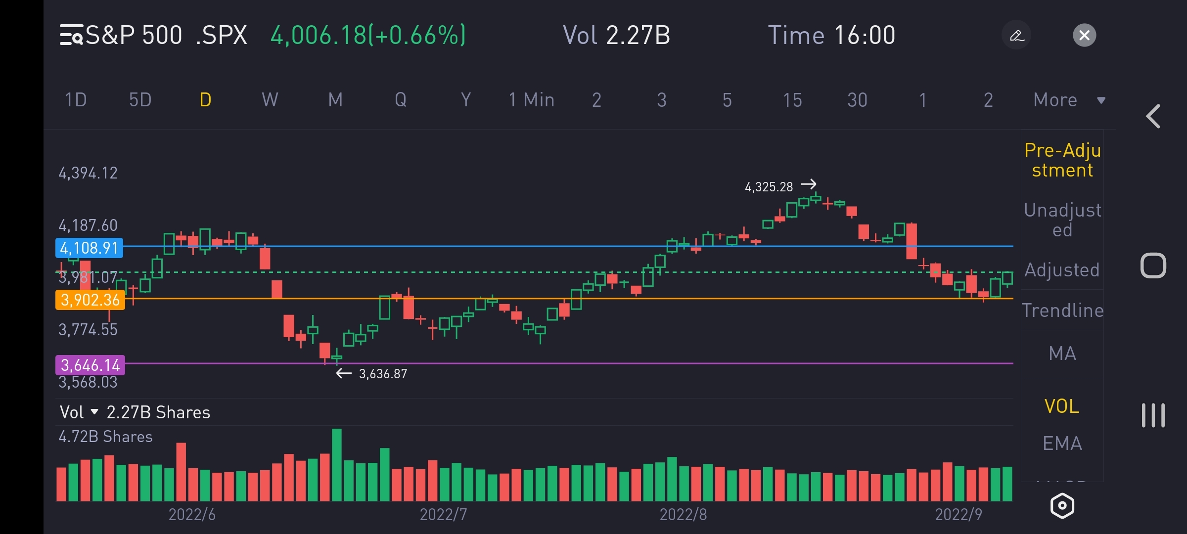 Looking at SPX, there's a high chance of the index ranging between support and resistance for the next two weeks till Fed announces Sep's rate hike. 75 basis points I presume? [Doubt]
