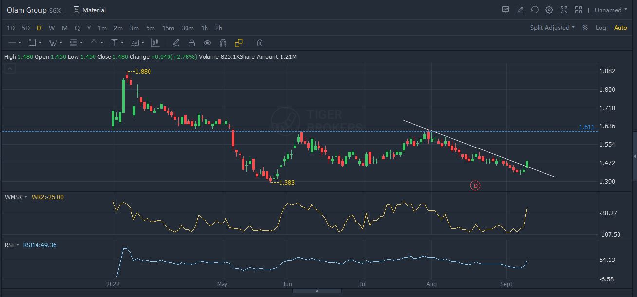 $Olam Group(VC2.SI)$Trendline break.........could go to $ 1.60......see chart attached.......