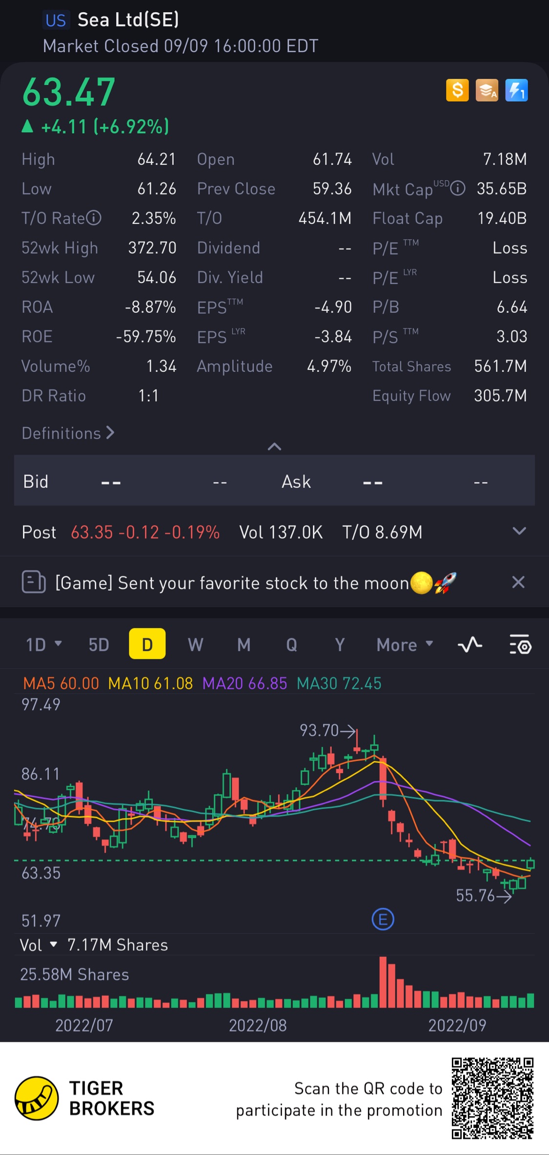 $Sea Ltd(SE)$ Not sure why SEA would still be bullish. Recent earnings show that although e-commerce income has increased significantly y-o-y, net loss hasn't decreased. From a profit margin perspective, continuing to grow their e-commerce segment is not yet sustainable. This is even more worrying given the current macroeconomic climate and expected tightening of consumer pockets.