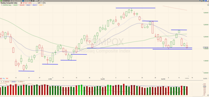 $NASDAQ(.IXIC)$ (-1.43%) tested the support with important volumes again. The price tried to reverse, but sellers were stronger and sent it back to the lows. This consolidation is bearish now. Waiting and watching the price action is always safer than blindly betting.