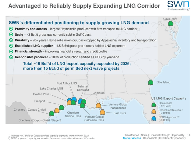 Today, Southwestern Energy is one of the largest suppliers of natural gas to existing LNG exporters at 1.5 billion cubic feet per day. As natural gas transitions from a regional to a global price-linked commodity, we believe we will differentially benefit as the Haynesville and Gulf Coast garner premium pricing relative to other basins.