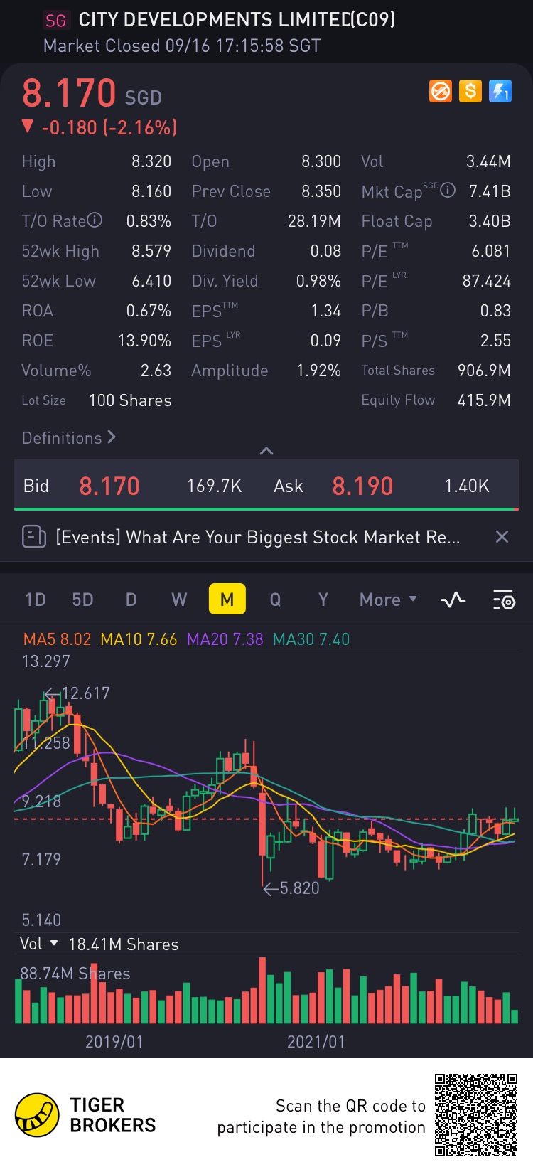 $CITY DEVELOPMENTS LIMITED(C09.SI)$Buy