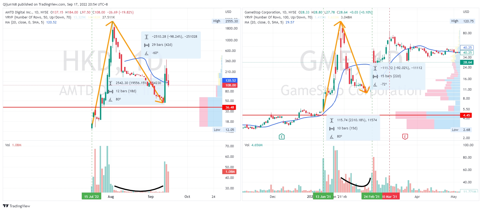 $AMTD Digital Inc.(HKD)$$GameStop(GME)$AMTD vs GME, they have similar moves