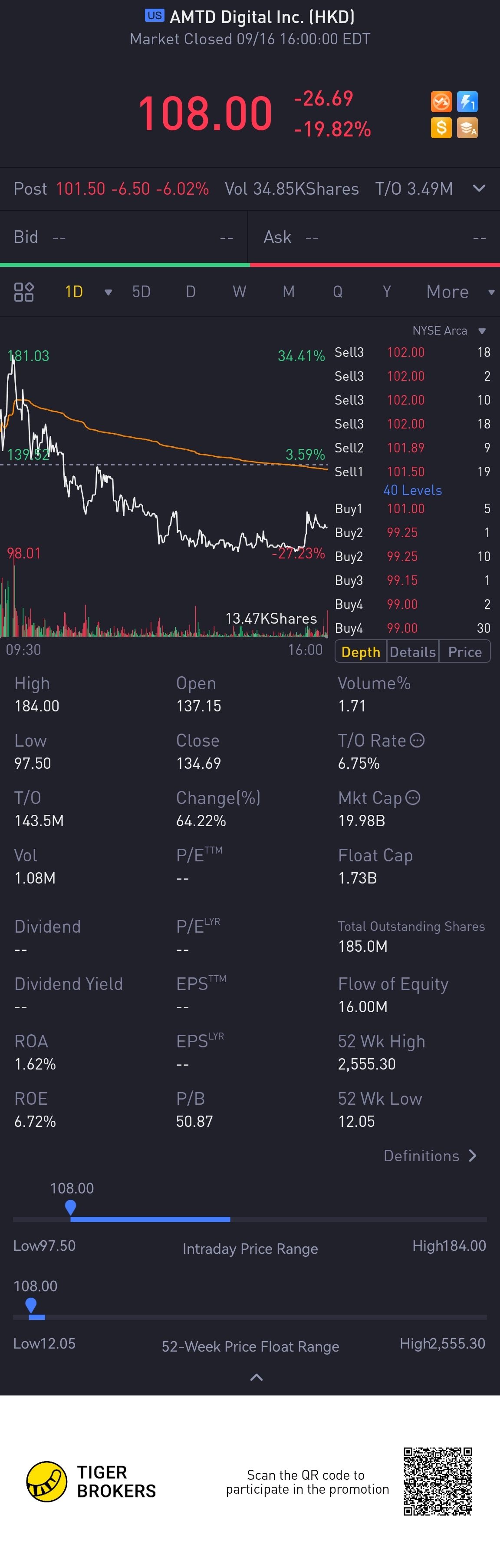 $AMTD Digital Inc.(HKD)$AMTD share expects to move down before hiking the interest rate by Federal Reserve Chairman Powell next week.. We are really hard to catch the actual share value due to up down is too fast, but looking forward to move up again once stabled..
