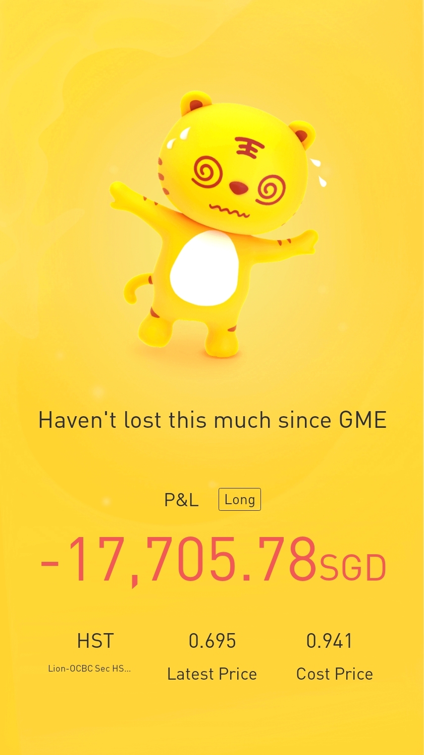 $Lion-OCBC Sec HSTECH S$(HST.SI)$the last lot set to sell at 0.69. Will accept the losses. Worthless and Hopeless in China GOVT management. How about the rest?