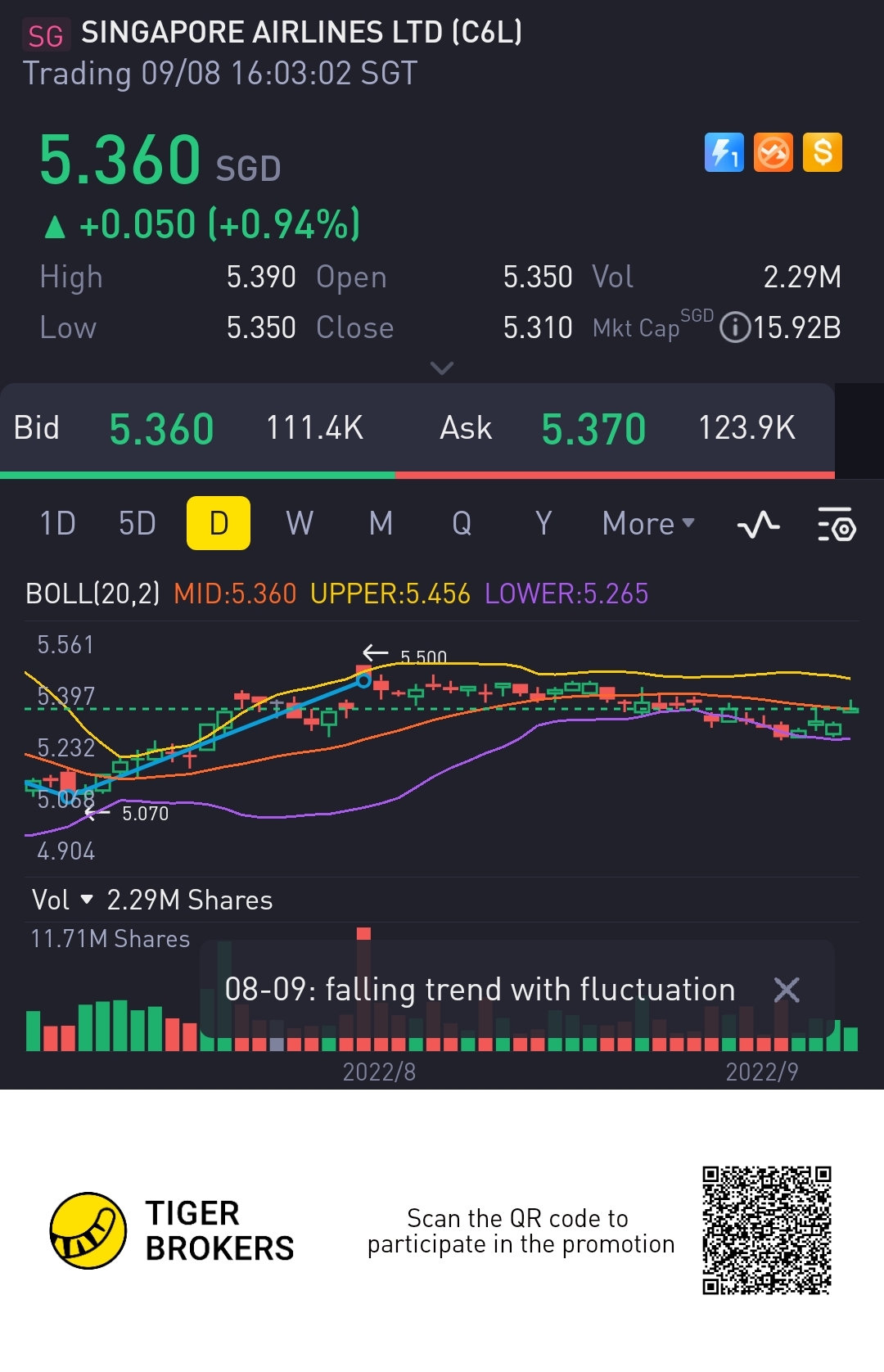 $SINGAPORE AIRLINES LTD(C6L.SI)$up