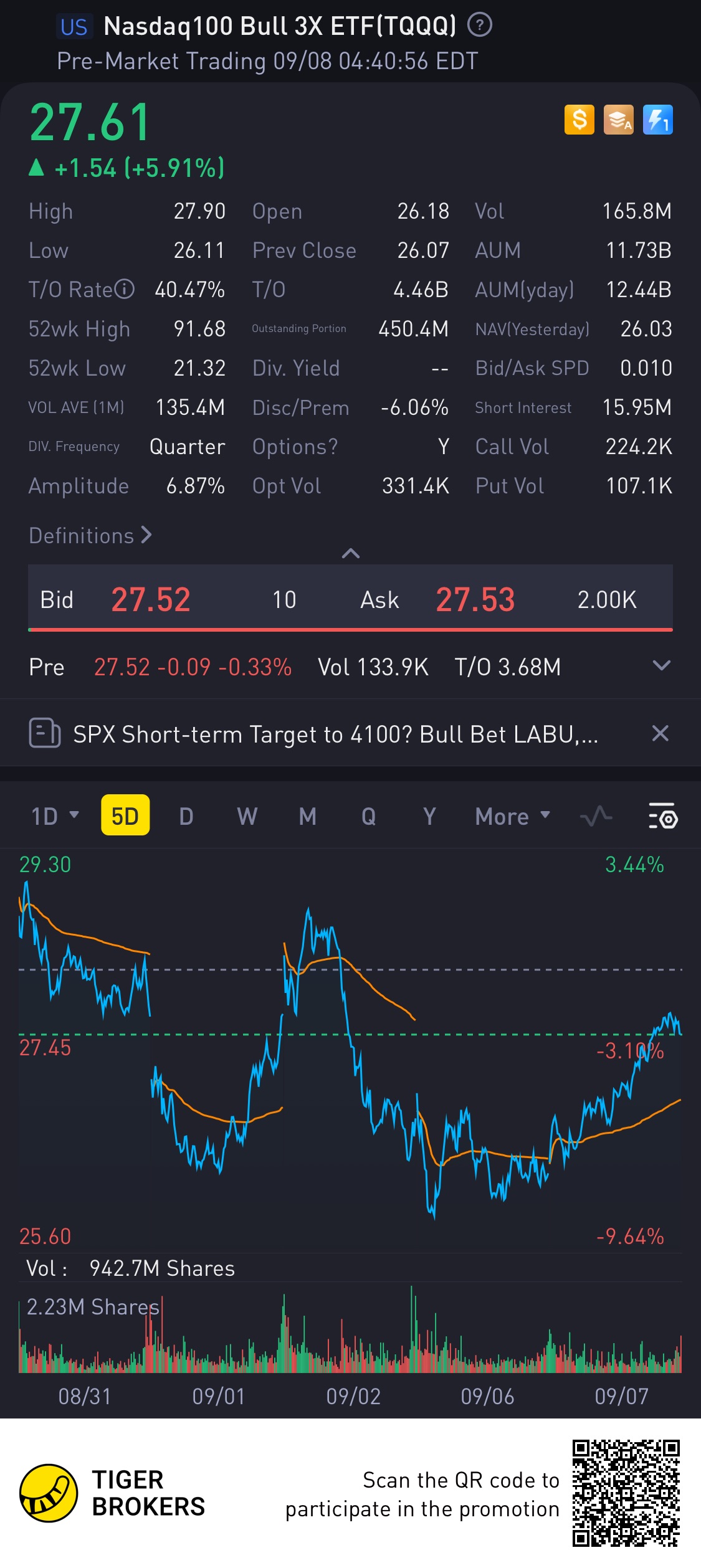 $Nasdaq100 Bull 3X ETF(TQQQ)$