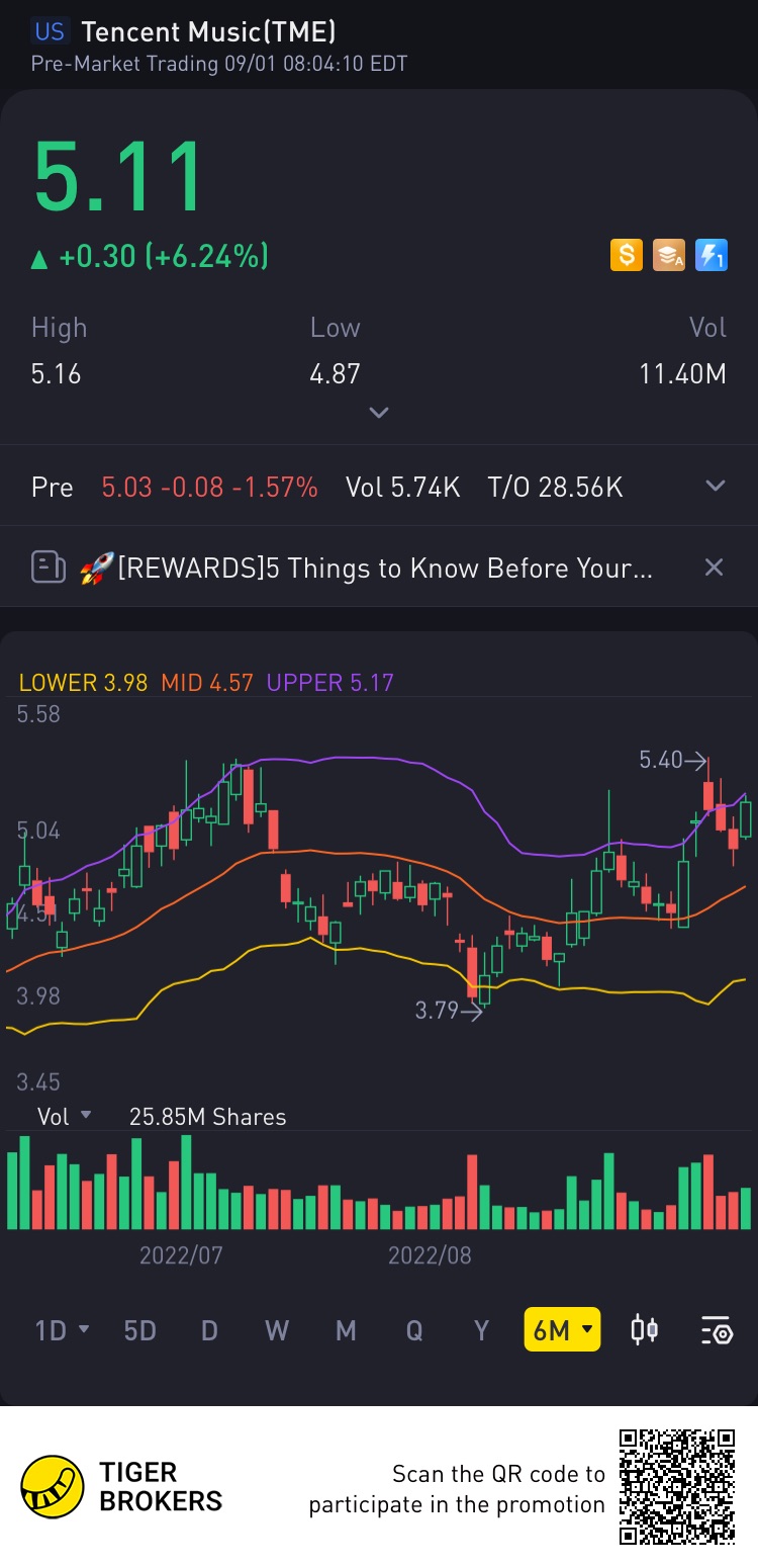 $Tencent Music(TME)$Break $5 resistance,keep going up