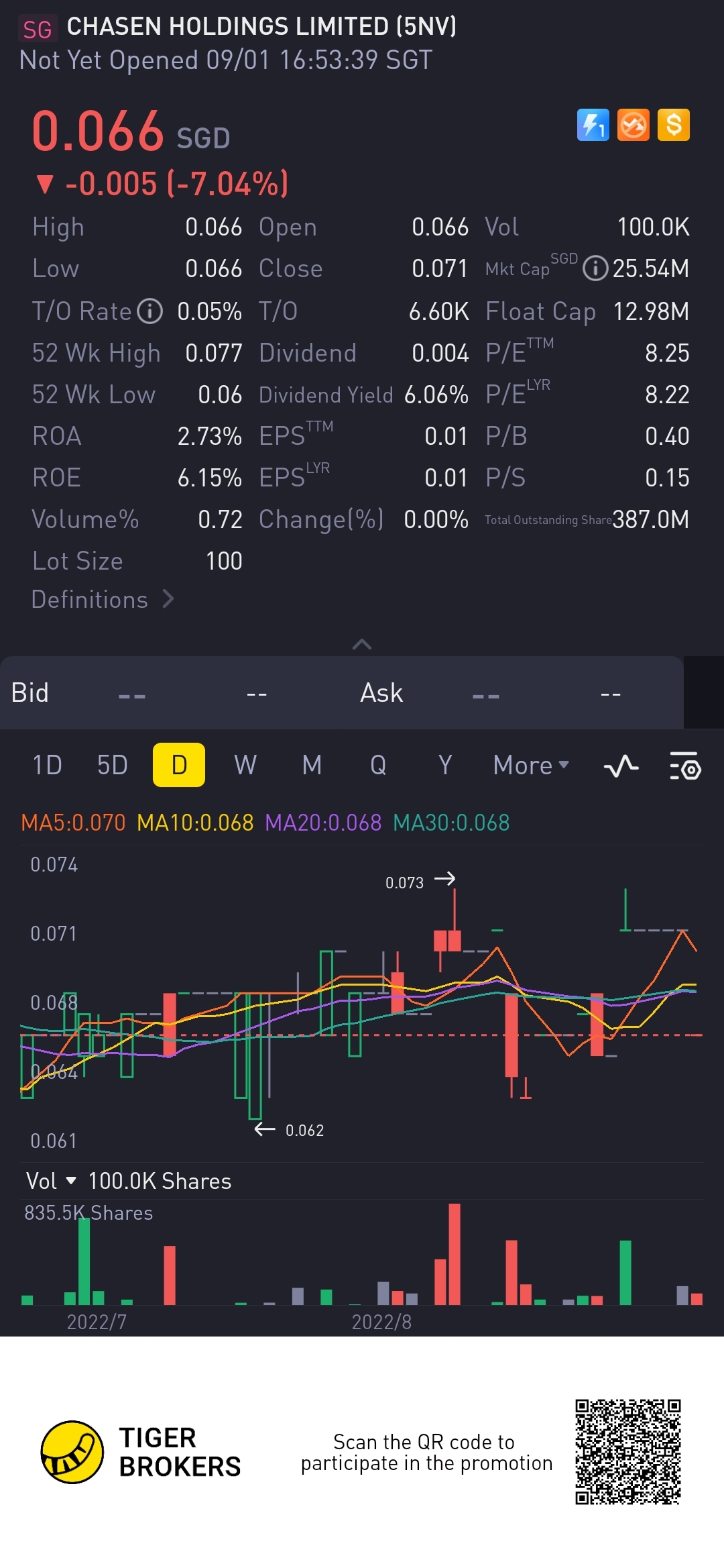 $CHASEN HOLDINGS LIMITED(5NV.SI)$waiting more