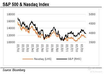 Markets are now pricing in a higher probability of a terminal rate of 5.5% in September which implies at least 3 more 25 basis point rate hikes. This comes after US consumer prices rose by 0.5% m-o-m in January because of the continued tight labor market and certain sticky factors within the inflation basket such as rents and food. Furthermore, tensions between Russia and Ukraine have also further escalated since the start of the year. $S&P 500(.SPX)$ fell by -0.5% while $NASDAQ(.IXIC)$ fell -0.7% overnight.