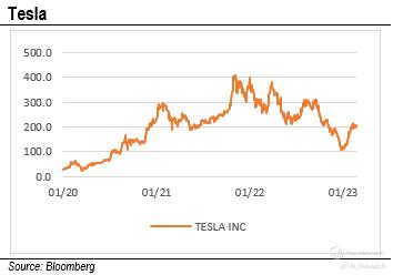 The company also revealed its Optimus humanoid robot during the presentation which Elon has visioned to be bigger than the vehicle segment in the long run. Shares of Tesla have recovered impressively by over 64.6% year to date, after deliveries concerns and Musk’s acquisition of Twitter last year. Tesla is currently trading at 51x/36x of FY2023/24 price-to-earnings ratio.