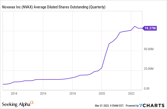 The company ended 2022 with over 78 million diluted shares outstanding. Prior to covid, Novavax had done a1-for-20 reverse splitto reduce the share count.