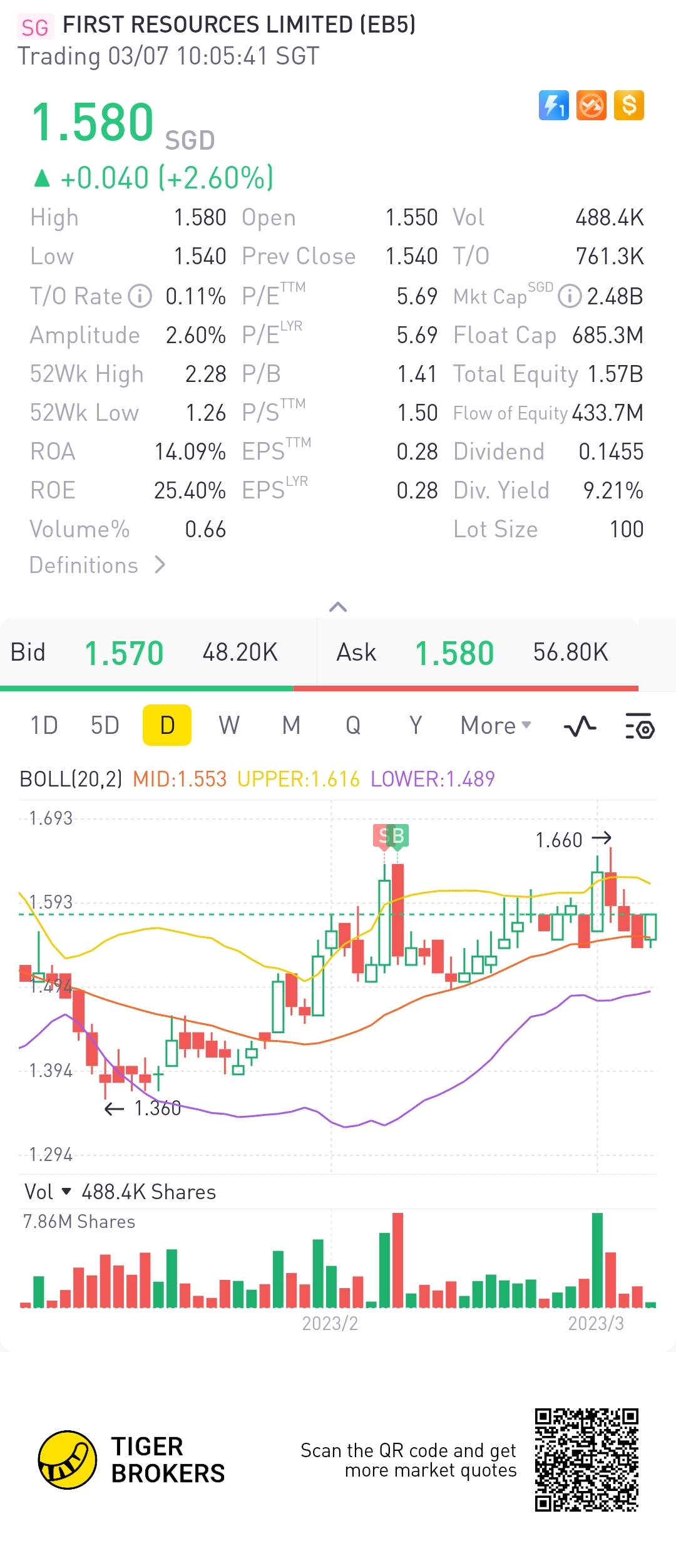 $FIRST RESOURCES LIMITED(EB5.SI)$  uptrend now, dividend $0.12