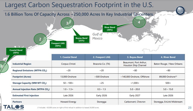 I will just document Talos CCUS footprint without much of any other commentary on the topic itself. Thus far this effort is in its fairly nascent stages and just sucking up capex. Shane Young, CFO noted the following on CCS capex: