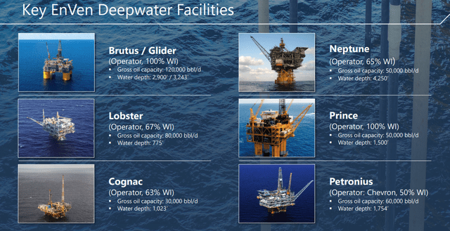 Since our last report on Talos, the company has merged with EnVen, a competing GoM player, with a substantial footprint in this key basin. EnVen fills in a lot of gaps in the Talos infrastructure base beginning with the old Shell (SHEL) bottom supported Cognac platform in relatively shallow waters to the floaters-Brutus/Glider, and Neptune in 3,000-4,250' of water.