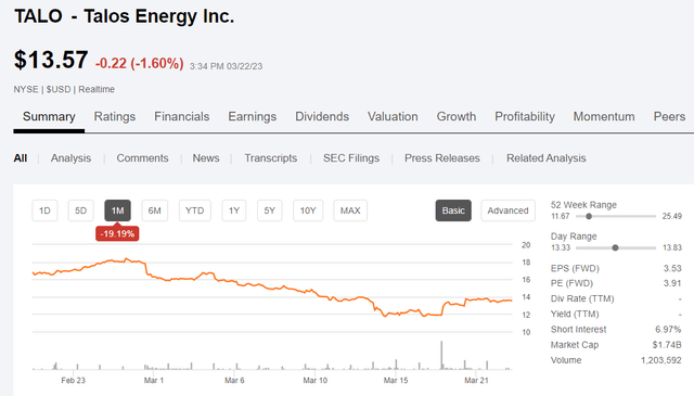 Talos Energy Price chart(Talos Energy Price chart (Seeking Alpha))