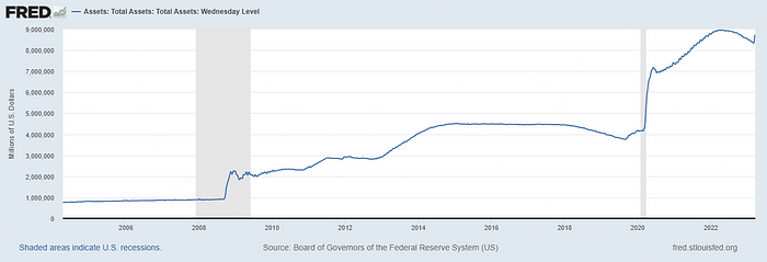 Previously, Chairman Powell stressed that bringing down inflation was their number one priority, evidenced by the rate hikes. But contrary to what he says, it appears they also want to keep the economy growing, hence the asset growth of the last two weeks.