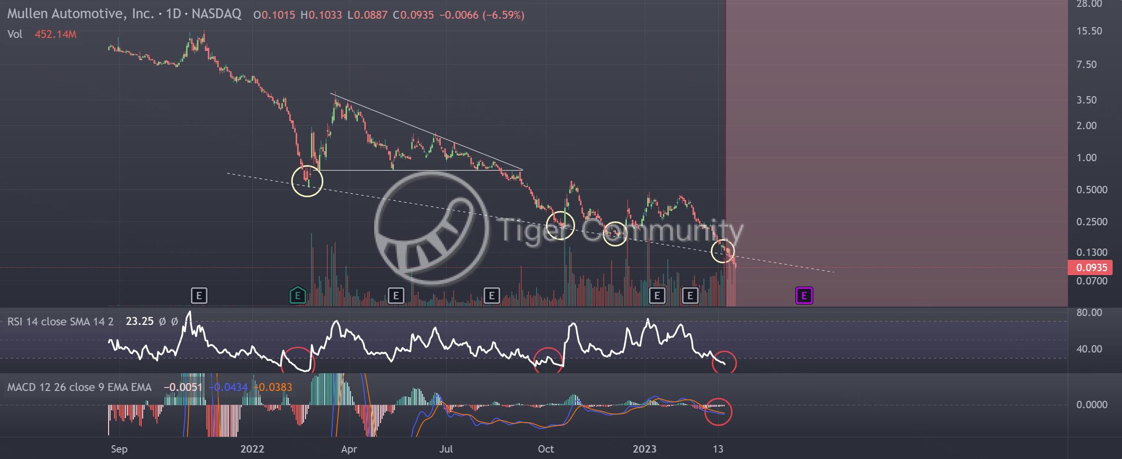On March 18, $Mullen Automotive(MULN)$ should bounce from the bottom trendlineRSI extremely oversold.