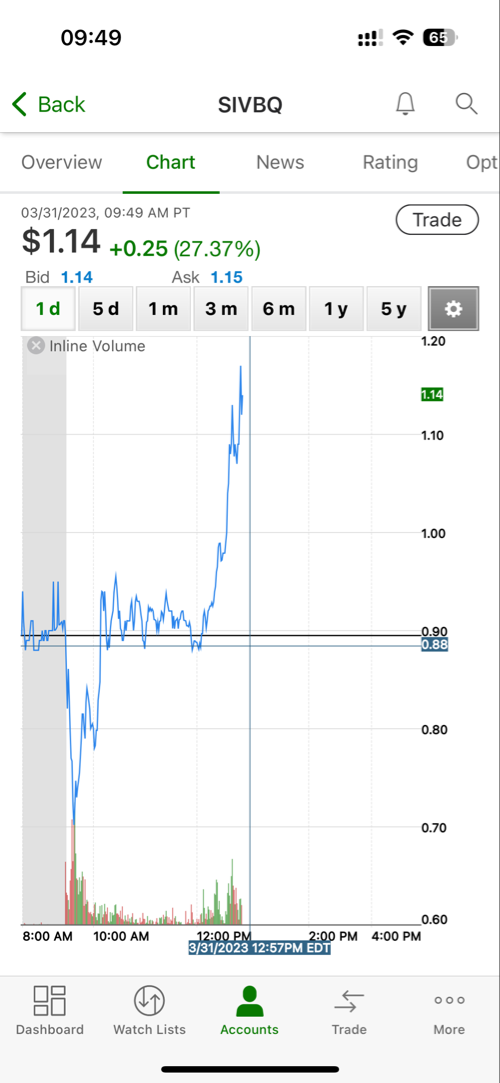 $SVB Financial Group(SIVBQ)$ I dont know what behind this OTC stock now? is there any company behind it to drive it upwards or its just a number going up and down? I got a good loss in SIVB and broker closed my position when it opened that day after a disgraced halt.