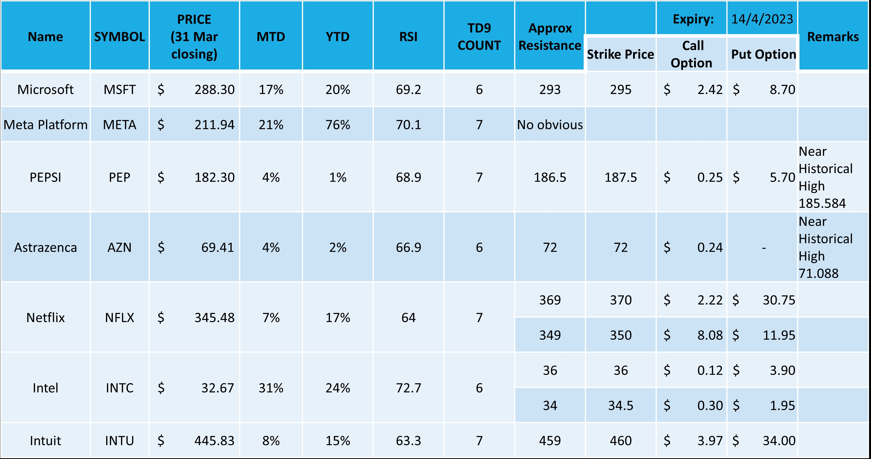 If the RSI goes above 75 and the TD count reached 9 with a perfect sell formed this coming Wednesday, I will consider buying some Put options at the strike price of $295. Or if the RSI is able to go about 80, I may consider buying more Put options at a suitable price. As the per share price is too high, I will not sacrifice my margin by selling naked call options directly.