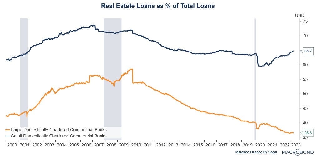 As a result, 43% of the total loan book of smaller banks is towards the CRE space,which is highly concentrated for banks that are lifelines to the US economy.