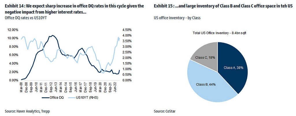 If a credit event leads to a hard landing for the US economy, the vacancy rates will likely jump to 25%-30% with a lag. It will be mayhem across the CRE space (office) in that scenario.