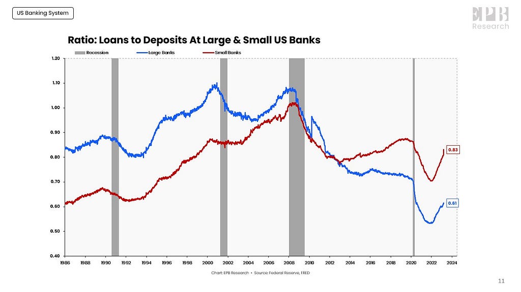 Second, the other notable feature is that smaller regional banks heavily concentrate their lending towards real estate loans while the larger banks have diversified their loan books.