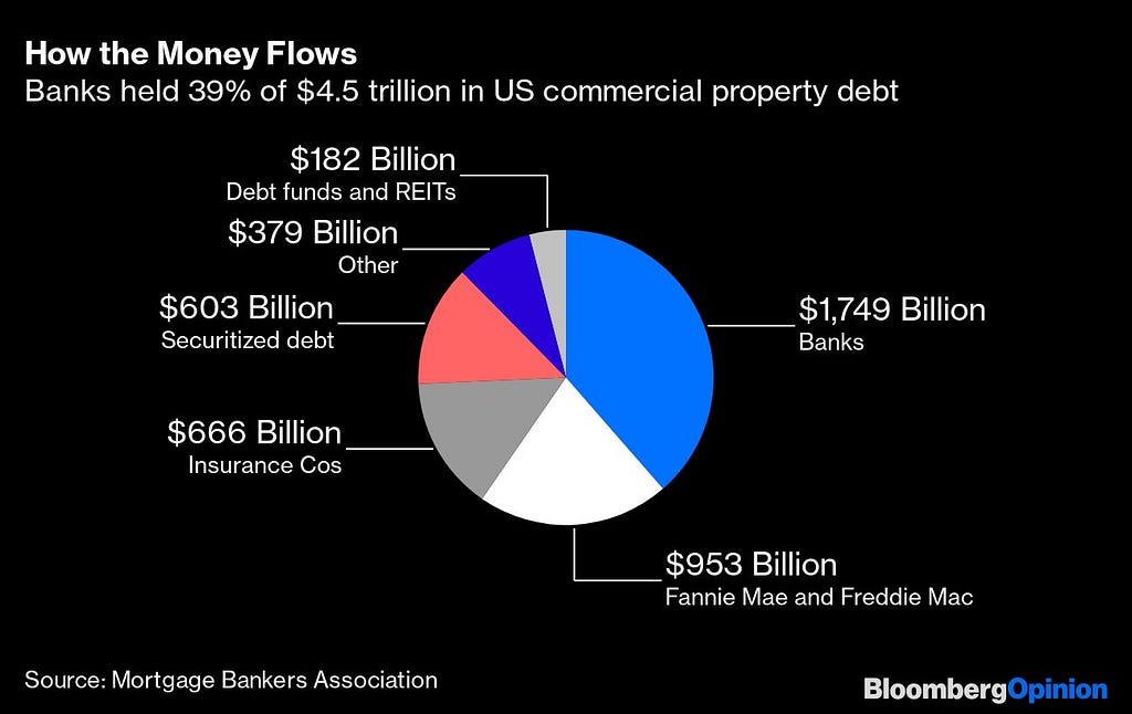 The bank’s exposure to the CRE market is roughly 39%, while Fannie Mac and Freddie Mac and the insurance companies hold the second and third largest exposures, respectively.
