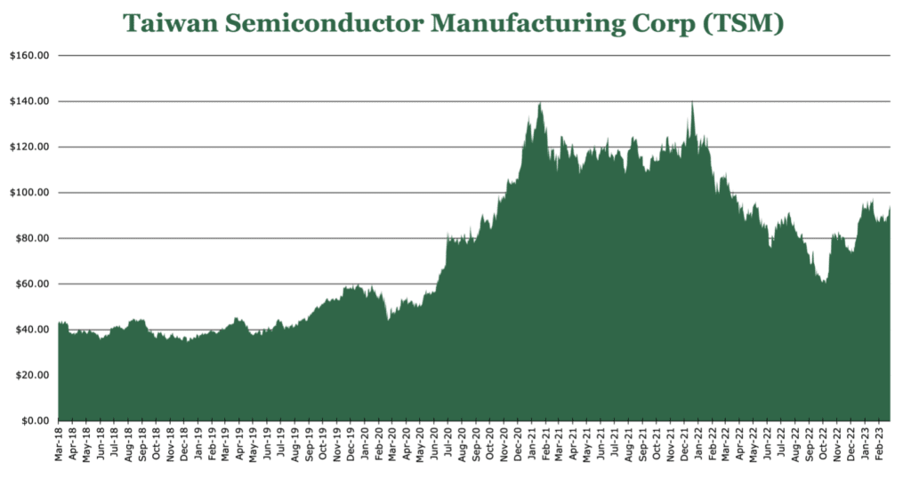 The global semiconductor foundry market is growing quickly. In FY22 the global market for semiconductors grew 8.2% to $573 billion, with foundries growing 27% to $77.8 billion. FY23 is likely to contract, along with TSM’s revenue, about 3-5%.