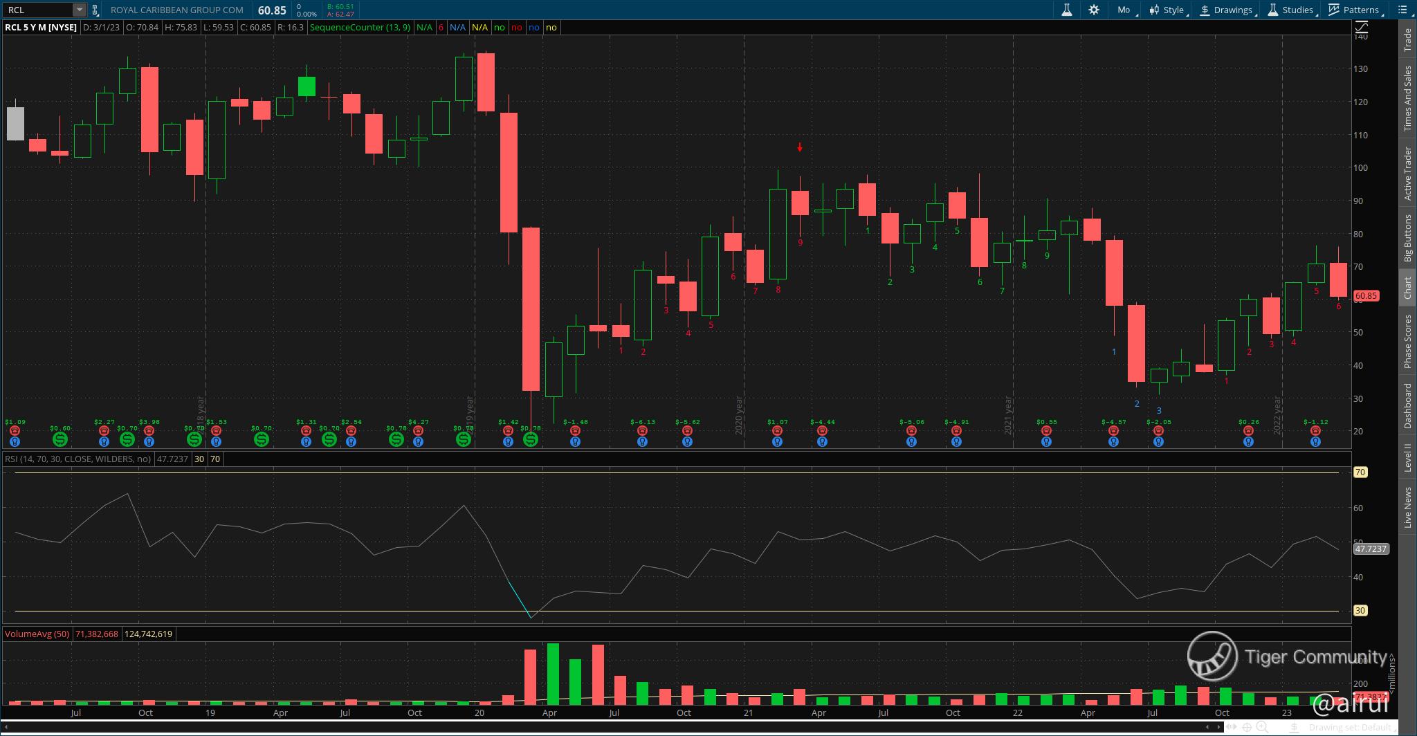 As of March 2023, the cruise line stocks are still far from their pre-pandemic value (See monthly charts below for the three cruise lines), and this could be an indication that they are undervalued. However, it is important to note that the cruise industry is still facing challenges such as inflation and the rising fuel prices.