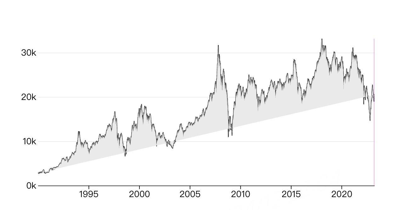 This is Hang Seng Index value. Flick back through some of the major milestones of the Hong Kong stock exchange and see how it has been impacted since 1990.