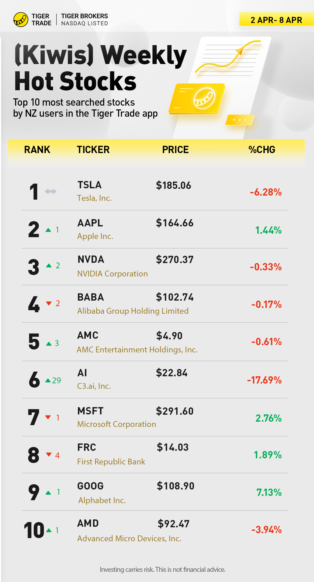Here I will post the 10 most searched stocks by New Zealand users in the Tiger Trade App every week. Don't miss my updates!!!