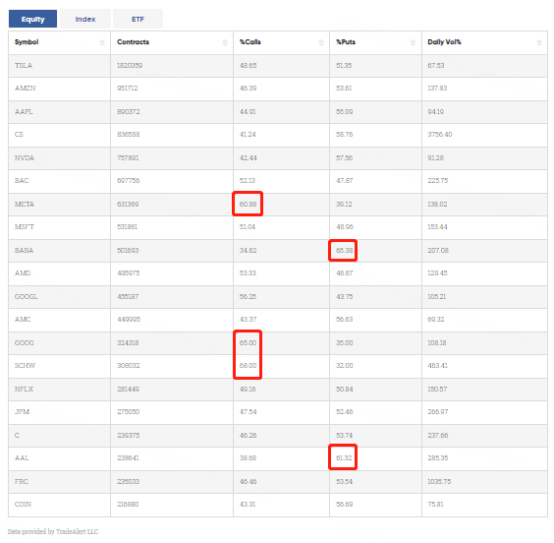 Special %Calls >60%: $Meta Platforms, Inc.(META)$; $Alphabet(GOOG)$; $Charles Schwab(SCHW)$