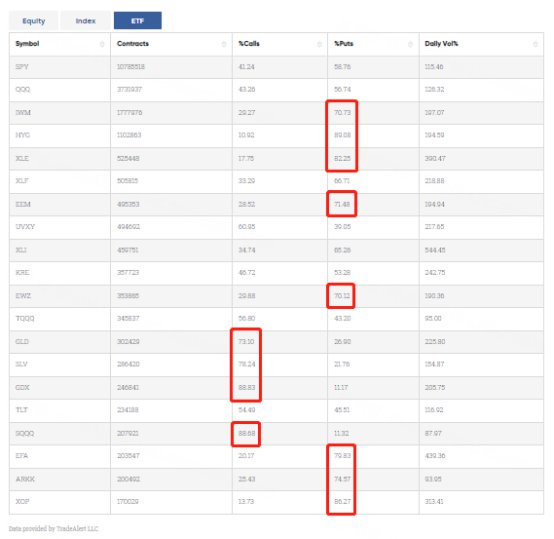 Special %Puts >70%: $iShares Russell 2000 ETF(IWM)$; $iShares iBoxx $ High Yield Corporate Bond ETF(HYG)$; $Energy Select Sector SPDR Fund(XLE)$; $iShares MSCI Emerging Markets ETF(EEM)$; $iShares MSCI Brazil ETF(EWZ)$; $iShares MSCI EAFE ETF(EFA)$; $ARK Innovation ETF(ARKK)$; $Spdr S&P Oil & Gas Exploration & Production Etf(XOP)$