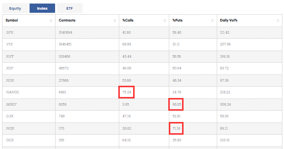 Special %Puts >70%: MXEF; NQX