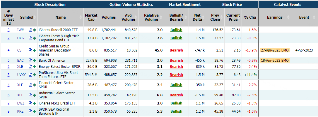 Data From CBOE Trader Alert, as of 16 Mar 2023 EDT